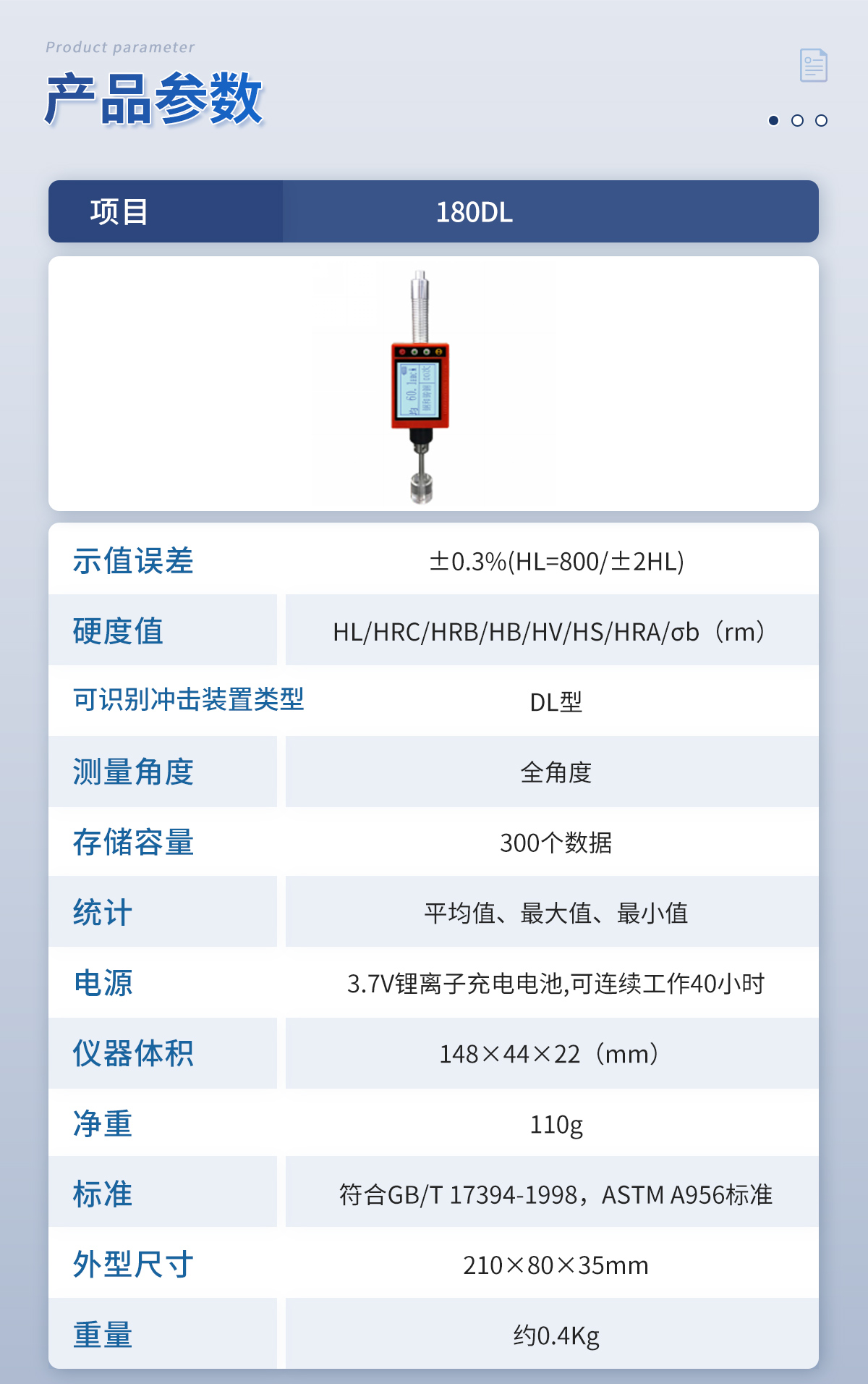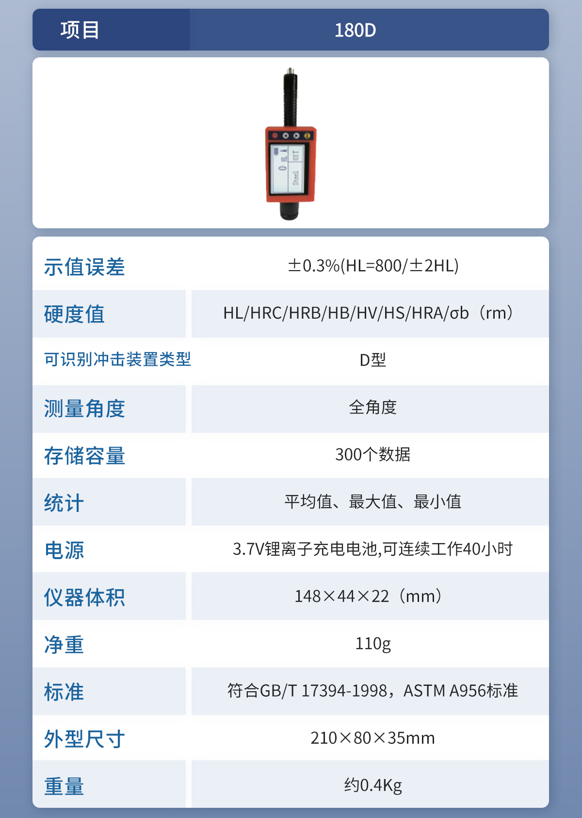 ● 設(shè)計依據(jù)標(biāo)準(zhǔn):《里氏硬度計技術(shù)條件》 JB/T 9378-2001;