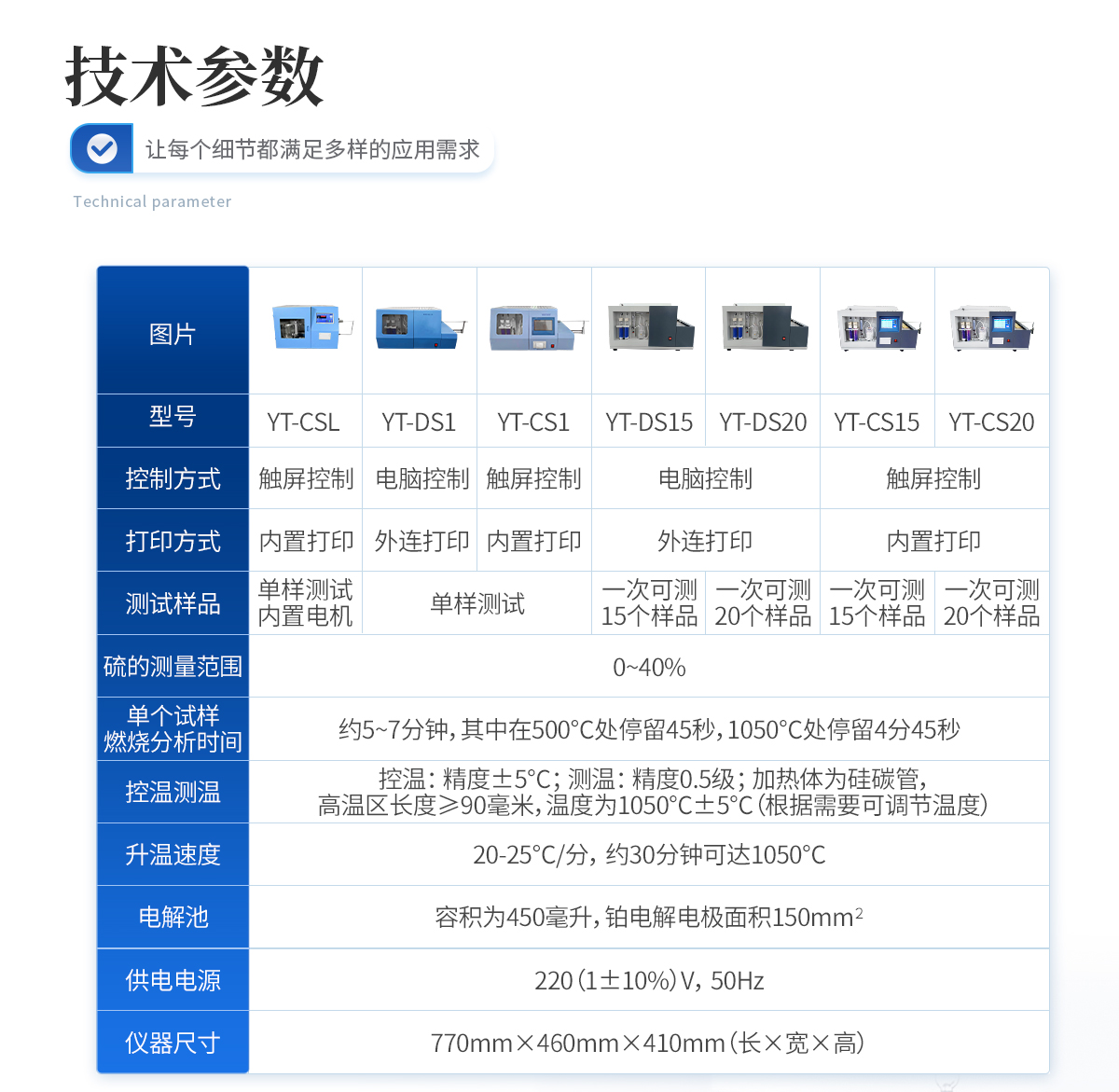 | 1、 硫的測量范圍:0—40%. | 2、 單個試樣燃燒分析時間:約5--7分鐘,其中在500℃處停留45秒,1050℃處停留4分45秒。 | 3、控溫:精度±5℃。測溫:精度0.5級;加熱體為硅碳管,高溫區長度≥90毫米,溫度為1050℃±5℃(根據需要可調節溫度) | 4、 密度:如下表規定: St,% 重復性St,ad,% 再現型St,d,%<1 1="" 0.05="" 0.10="">4 0.20 0.30 | 5、升溫速度:20--25℃/分,約30分鐘可達1050℃。 | 6、電解池:容積為450毫升,鉑電解電極面積150mm2 。 | 7、供電電源:220(1±10%)V,50Hz, | 8、功率:≤3KW。 | 9、儀器尺寸(mm) 長×寬×高(770×460×410) |