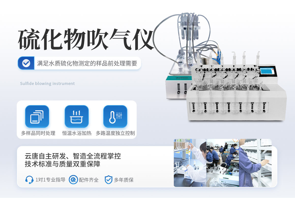 水質硫化物酸化吹氣儀根據水質硫化物的測定-亞甲基藍分光光度法(碘量法)標準開發生產的。滿足水質硫化物測定的樣品前處理需要。