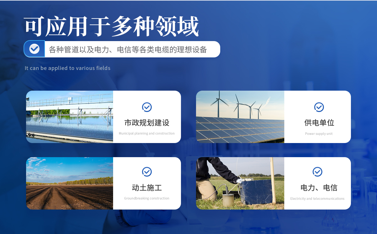 用途:地下管線和電纜定位(可測量地下管線位置、走向、深度、電流)