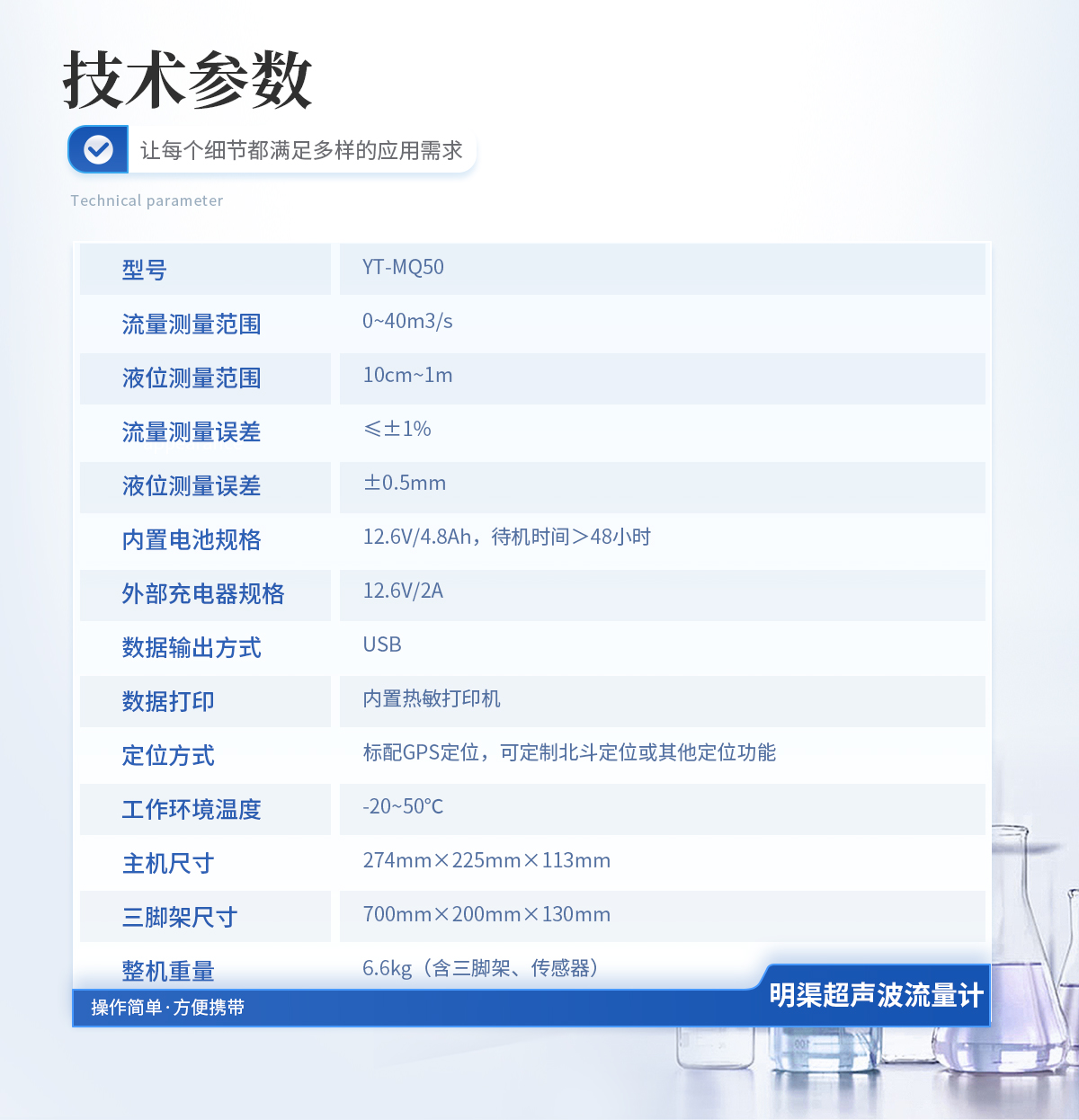 水利工程部門:監測河流、渠道、水庫的水流速度與流量; 環保部門、水質監測站以及相關環保企業:使用此類設備來監控城市排水系統、工業廢水排放的流速和流量; 第三方檢測機構:現場校準比對在線明渠流量計儀表設備; 應急管理部門:快速評估水流狀況,為防洪減災提供數據支持。