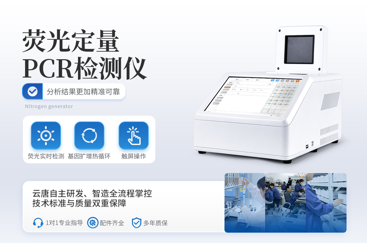 實(shí)時(shí)熒光定量PCR儀器的原理:聚合酶鏈?zhǔn)椒磻?yīng)(polymerase chain reaction,PCR)是一種用于放大擴(kuò)增特定的DNA片段的分子生物學(xué)技術(shù),它可看作是生物體外的特殊DNA擴(kuò)增,由高溫變性、低溫退火及適溫延伸等幾步反應(yīng)組成一個(gè)溫度循環(huán)周期,使目的基因得以迅速擴(kuò)增,具有特異性強(qiáng)、靈敏度高、操作簡(jiǎn)便、省時(shí)等特點(diǎn),是基因擴(kuò)增技術(shù)的一次重大革新。PCR技術(shù)可將極微量的目標(biāo)DNA特異地?cái)U(kuò)增上百萬(wàn)倍,從而大大提高對(duì)DNA分子的分析和檢測(cè)能力。