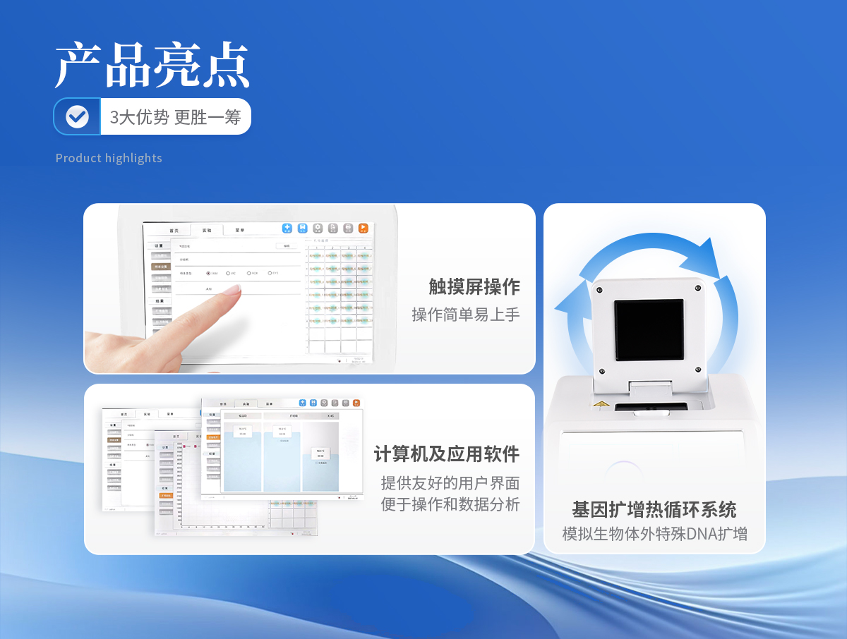 對(duì)取于其他動(dòng)物體內(nèi)的生物樣本(如血液,體液等)中包含的目標(biāo)核酸,進(jìn)行快速精準(zhǔn)的定性和定量分析,同時(shí)也能夠?qū)μ厥鈽颖具M(jìn)行標(biāo)準(zhǔn)曲線(xiàn),熔解曲線(xiàn),基因分型等分析。