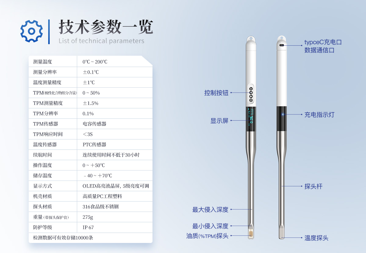 型號:LH-SYP 食用油品質檢測儀探頭外形采用梭形流線型設計,減少測試完成后存液掛液,同時利于擦拭清洗。   更新時間:2026-03-14