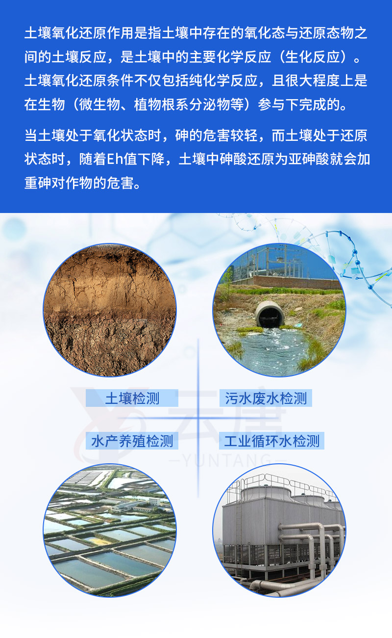 YT-QX6530型智能便攜式氧化還原電位測定儀是一種適用于對土壤和水(介質)Eh、mV、pH測量的便攜式儀器,可測量氧化還原電位(Eh)、mV、pH和溫度。由于采用了微電腦處理器,所以該儀器具有操作簡便,測量精度高,可靠性好等優點,可廣泛應用于環境保護對土壤、污水,廢水的檢測,水產養殖對水質的監測,以及工業循環水對水質的監控檢測。