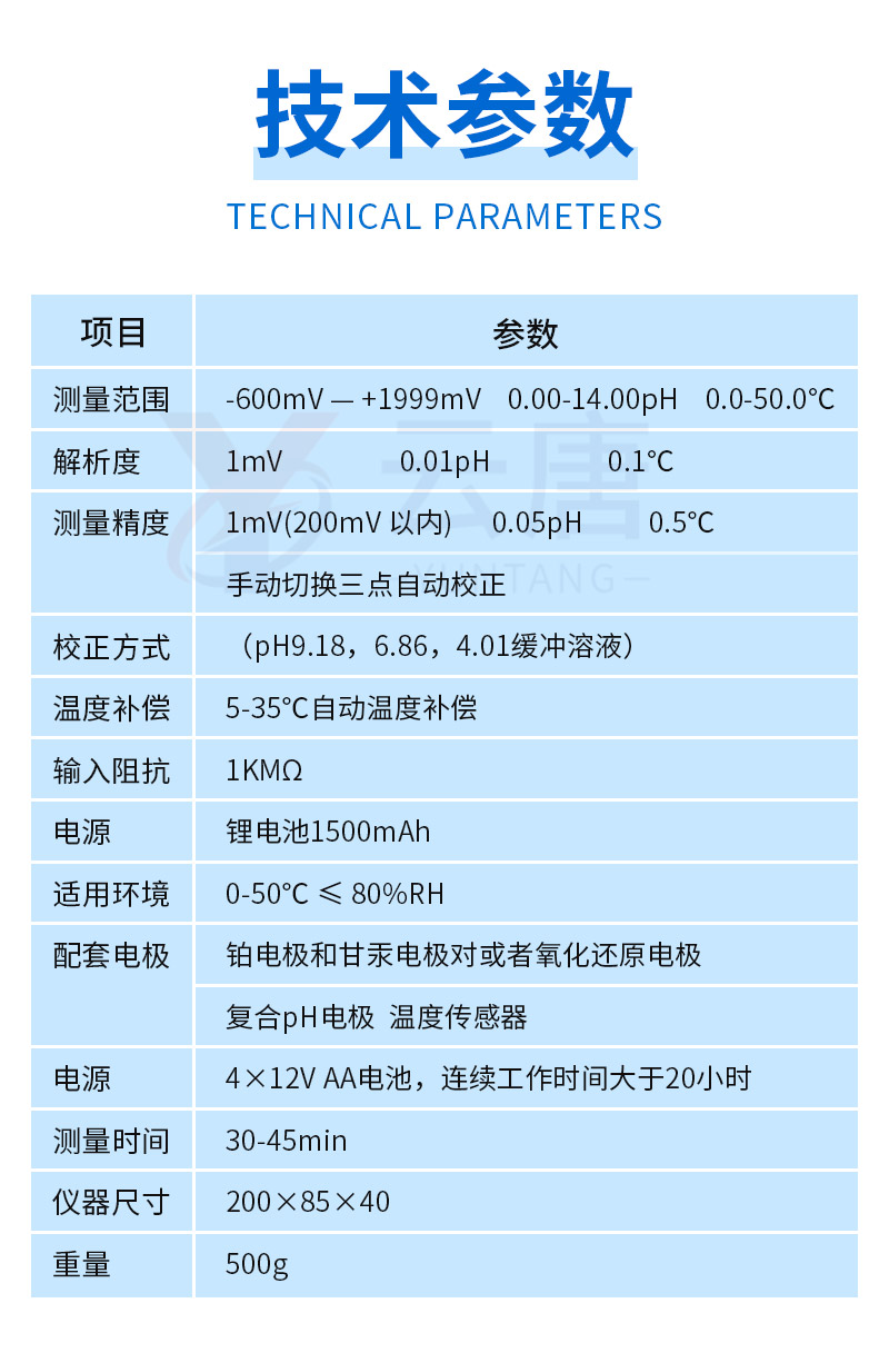 測量范圍:-600mV — +1999mV 0.00-14.00pH 0.0-50.0℃